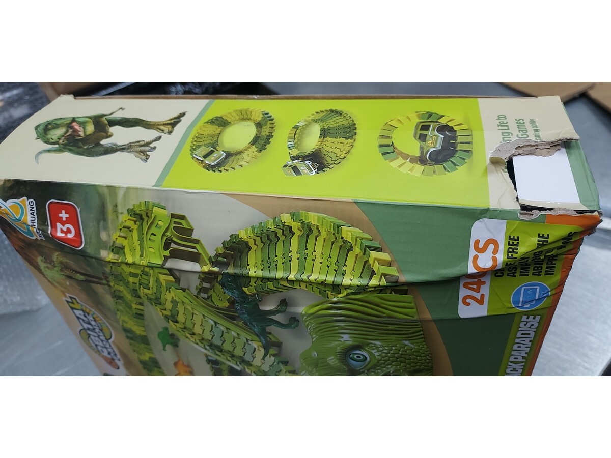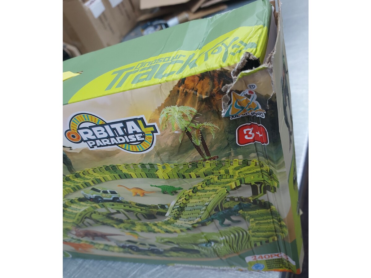 Produkt nowy, nieużywany, przeceniony tylko z uwagi na delikatnie uszkodzone opakowanie (wady widoczne na zdjęciach - wysyłka losowa). Elementy toru są całe.