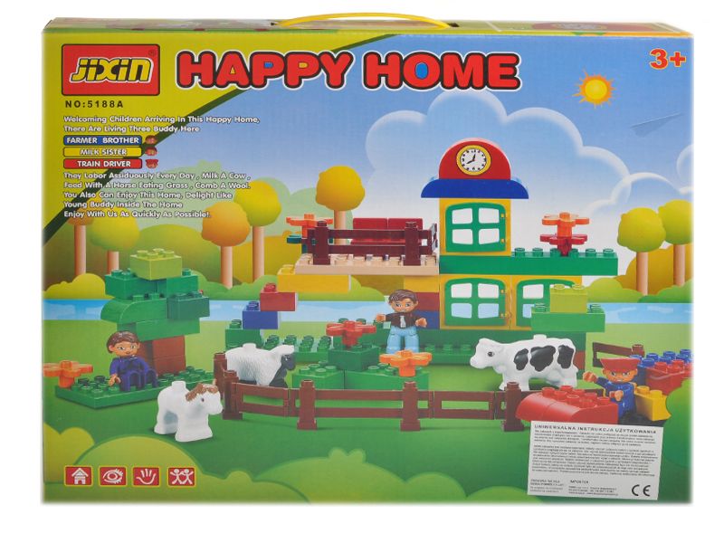 W trosce o najmłodszych, klocki wykonano z wysokiej jakości tworzywa w żywych, przyciągających uwagę kolorach. Klocki są lekkie i trwałe.